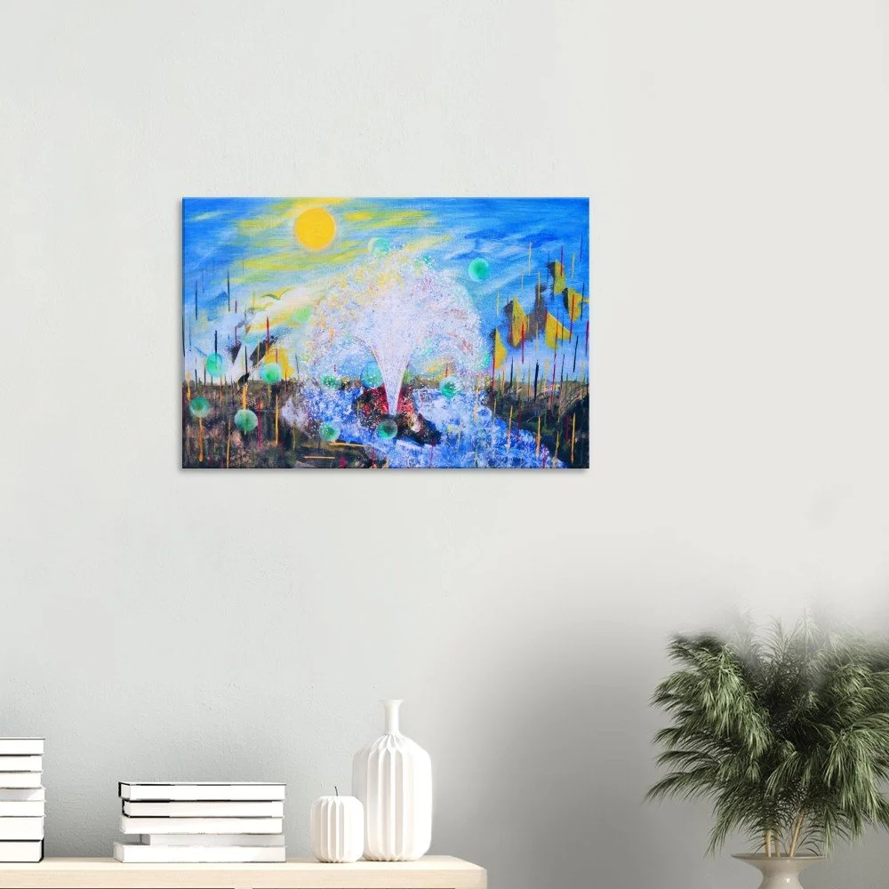 Transform your space with our stunning 'Fountain of Life' canvas print, an abstract masterpiece by artist Sadr Star. Crafted with enhanced texture and timeless beauty, this canvas enhances the image's natural look and feel, creating a truly immersive art experience. Choose from slim (2cm) or thick (4cm) options, with 26 sizes available to fit any wall perfectly. Made from responsibly sourced FSC-certified wood stretcher bars and a durable cotton-polyester blend (300-350gsm), this art piece is designed to last. A hanging kit is included for easy installation, tailored to your country. With no minimum orders, this print is made and shipped on demand just for you. Elevate your decor today with this captivating artwork!
