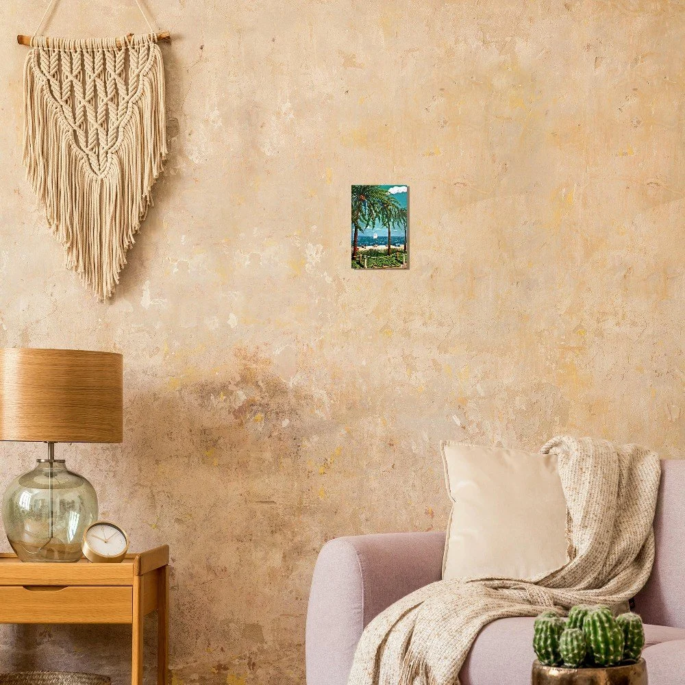 Tall palm trees create a rhythm in the space, the sea breathes freedom, and the light fills the scene with a sense of abundance and clarity. The composition is balanced and open, creating an atmosphere in which one wants to linger.